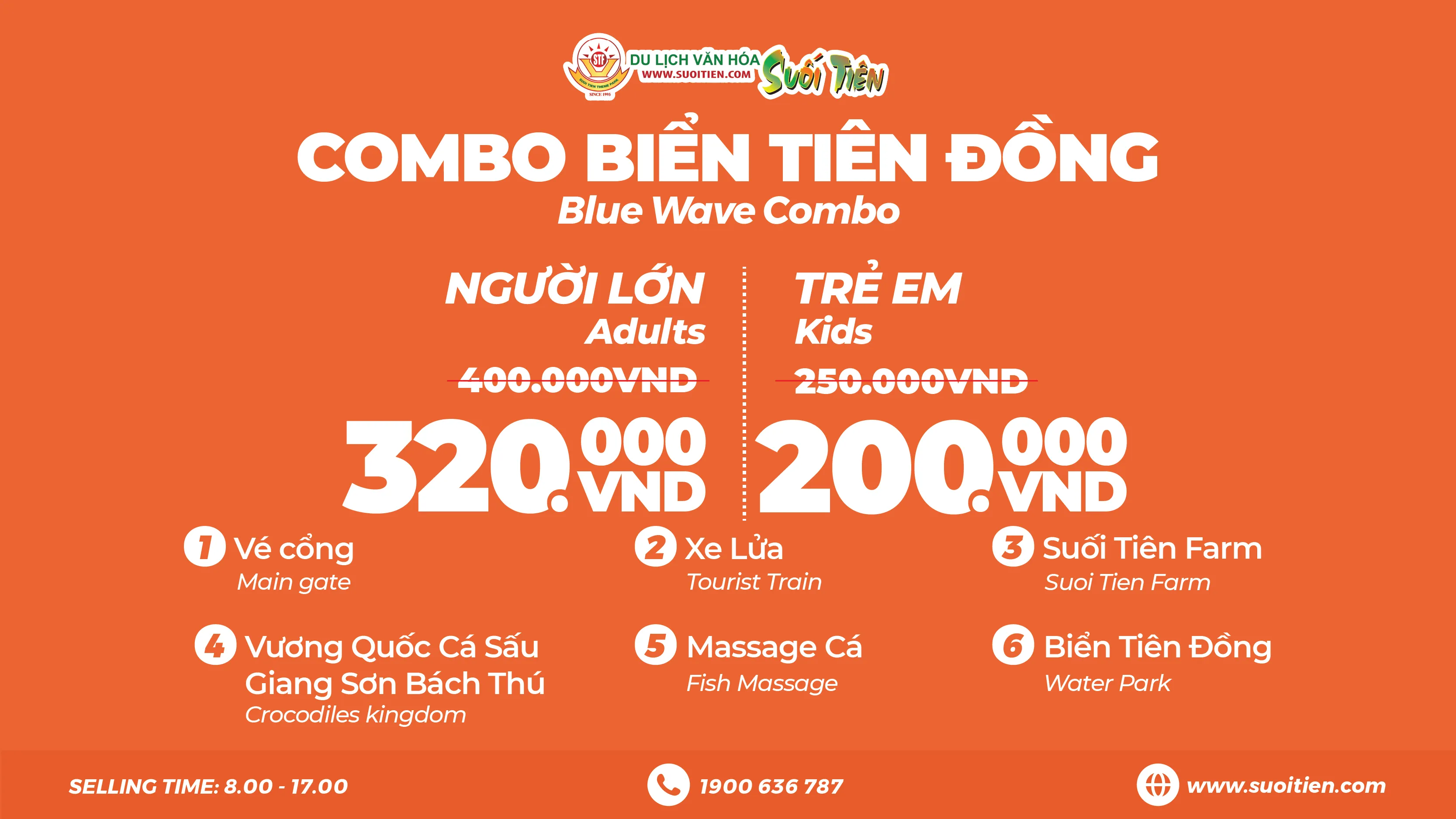 COMBO BIỂN TIÊN ĐỒNG - WATER WAVE COMBO -TRỊ GIÁ 320K (Người lớn) và 200K (Trẻ em)