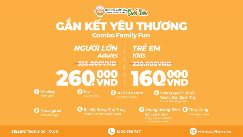 COMBO NGÀY VUI BẤT TẬN - FAMILY GATWAY COMBO - TRỊ GIÁ 350K ( Người lớn) và 210k (Trẻ em)