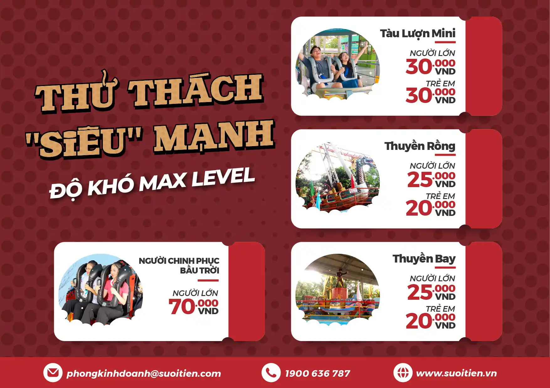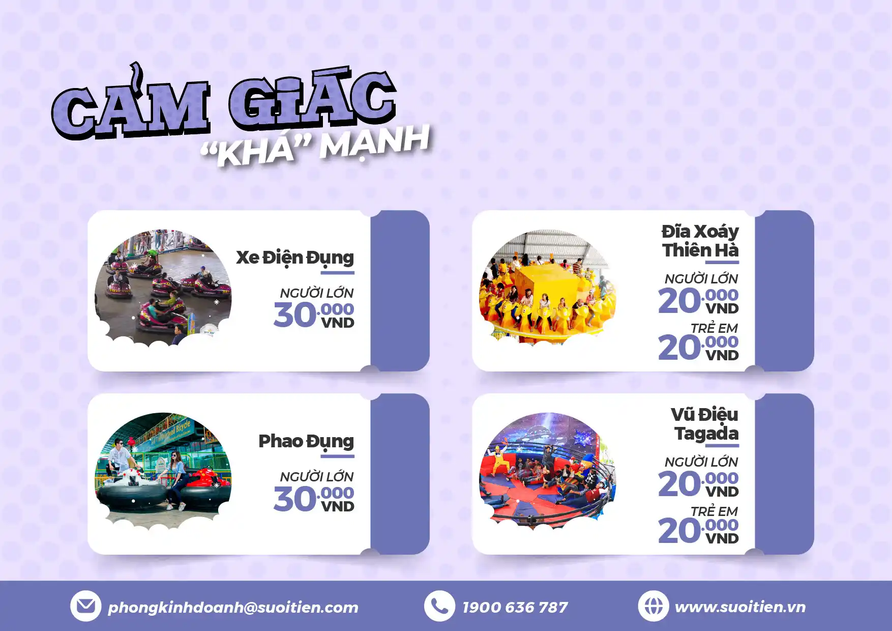 Lưu ý: Giá vé trò chơi có thể thay đổi vào các dịp Lễ, Tết.