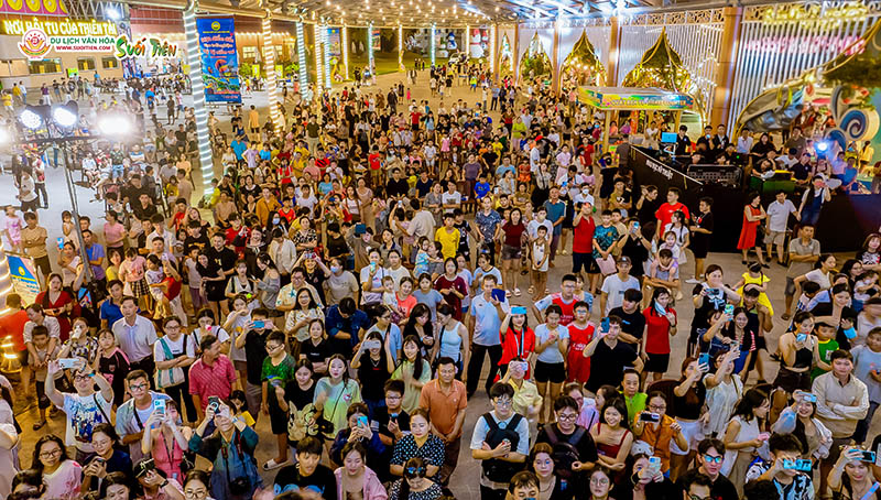 Ảnh du khách tại các hoạt động đêm đầy hấp dẫn tại Suối Tiên