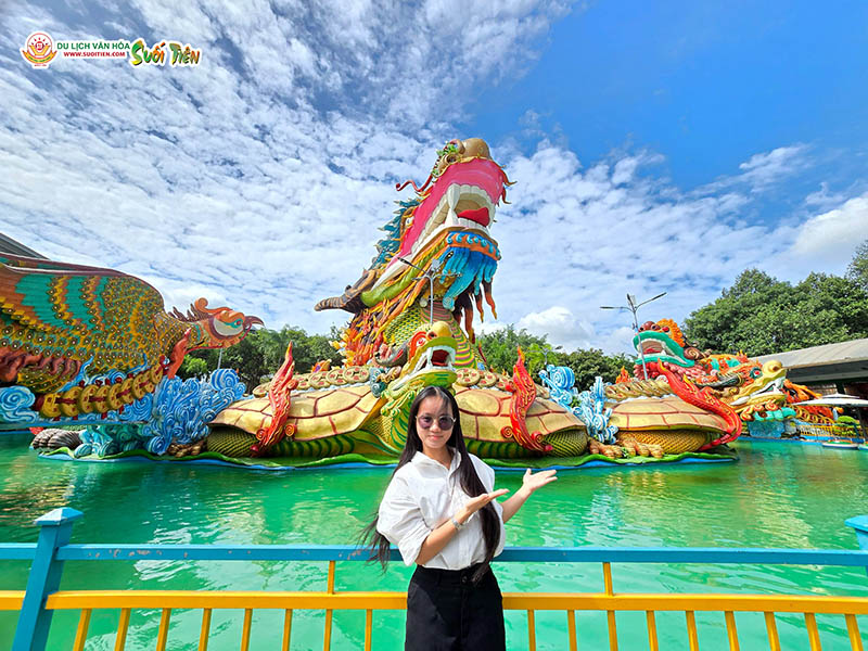 Anh Thư (21 tuổi, du khách) chia sẻ: “Mình thích nhất những công trình mang đậm màu sắc văn hóa và lịch sử dân tộc, bởi mình thấy được tâm huyết và tài tình khi các công trình được tạo nên. Mình chú ý nhất là hình ảnh Long - Lân - Quy - Phụng đặt ở bốn hướng trong Suối Tiên, và ngay trung tâm lại có công trình Tứ Linh Hội Tụ - nơi quy tụ linh khí, biểu tượng của sự thịnh vượng và hòa hợp. Điều đó khiến mình rất muốn chụp ảnh, quay clip và chia sẻ Facebook, TikTok, Instagram,... để bạn bè thấy được những giá trị văn hóa ở Suối Tiên, cũng như lan tỏa những giá trị tích cực này”.